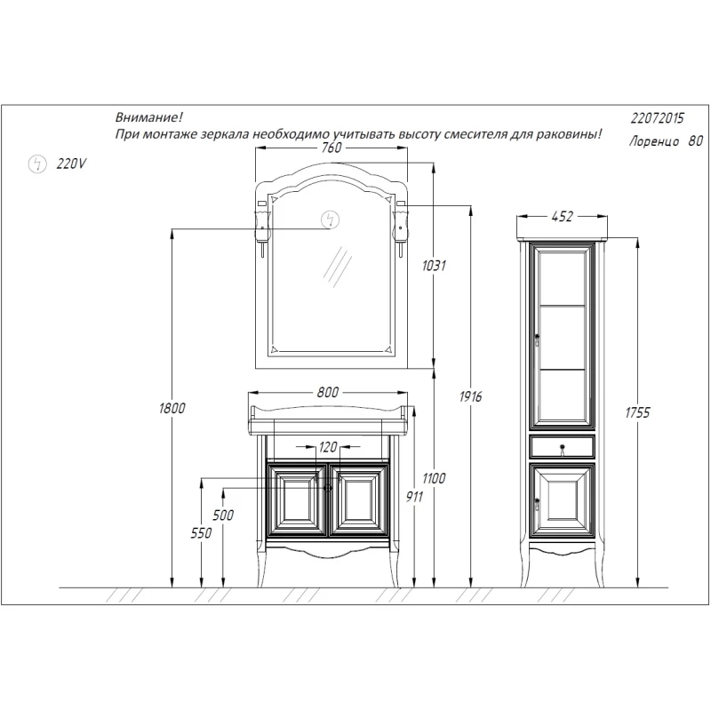 Комплект мебели светлый орех 80 см Opadiris Лоренцо