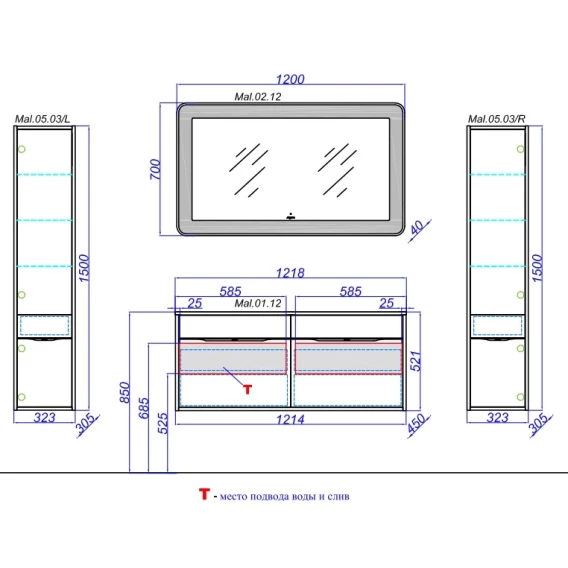 Комплект мебели белый глянец 121,8 см Aqwella 5 Stars Malaga Mal.01.12 + Mal.12.04.D + Mal.02.12