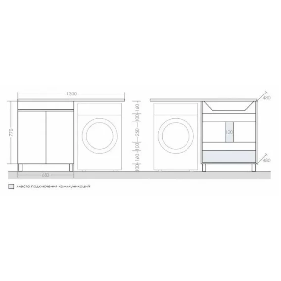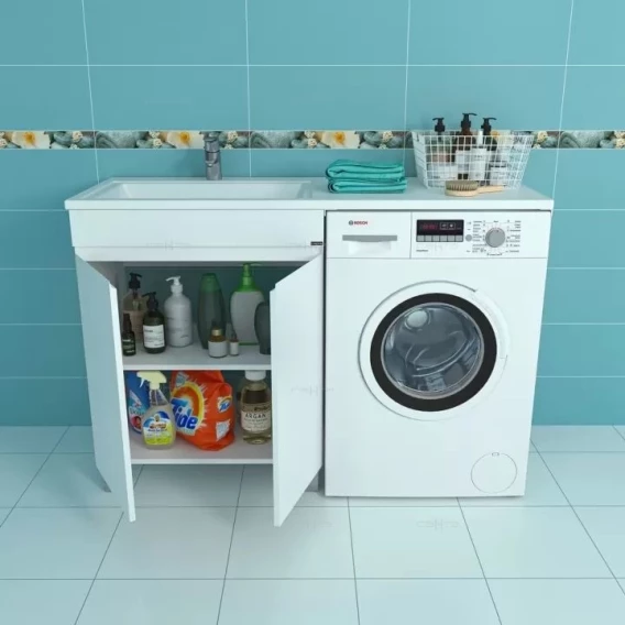 Тумбу можно устанавливать как под левую, так и под правую раковину.