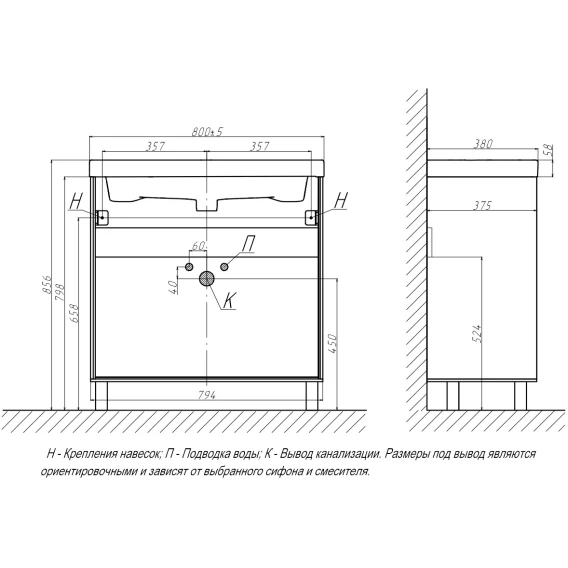 Тумба белый/графит 79,4 см Velvex Rigli tnRIG.80.2Y-21.631.231