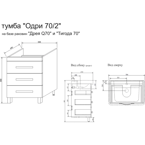 Комплект мебели белый глянец 70 см Sanflor Одри H0000000108 + 1.WH30.2.083 + H0000001156