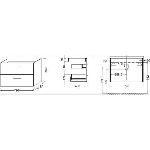 • 2 выдвижных ящика с механизмом плавное закрывание