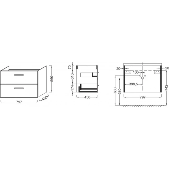 • 2 выдвижных ящика с механизмом плавное закрывание