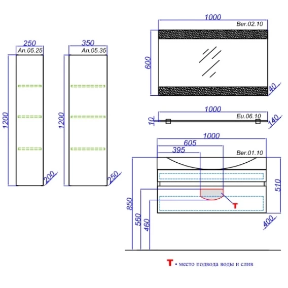 Тумба с раковиной белый глянец 100 см Aqwella 5 Stars Bergamo SETBer.01.10/W/Ber.10.04.D