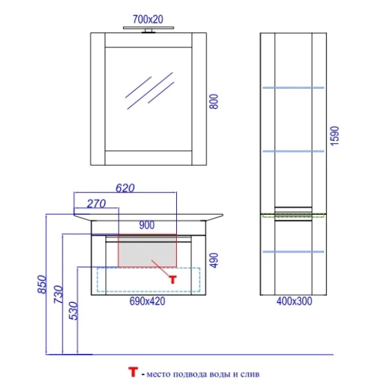 Тумба с раковиной дуб сонома 90 см Aqwella 5 Stars Symphony SETSim.01.07/1/DS/Sim.09.04.D