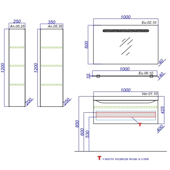 Тумба с раковиной белый глянец 100 см Aqwella 5 Stars Verona SETVer.01.10/W/Inf.10.04.D