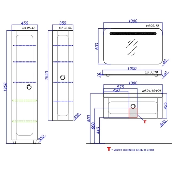 Комплект мебели белый глянец 100 см Aqwella 5 Stars Infinity inf.01.10/001 + Inf.10.04.D + Inf.02.10