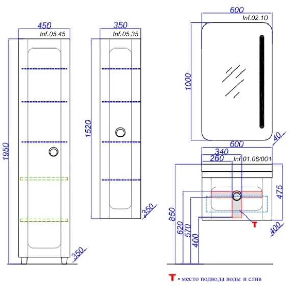 Тумба с раковиной белый глянец 60 см Aqwella 5 Stars Infinity SETInf.01.06/001/Inf.06.04.D