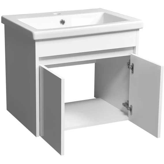 Тумба с раковиной белый глянец/белый матовый 60 см Stella Polar Фаворит SETSP-00000167/UM-COM60/1