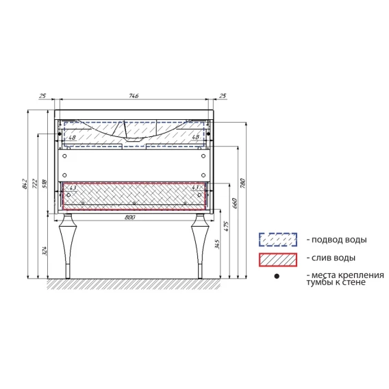 Крепление, Механизм доводчика, Ящик, Ножки, Тумба под раковину, Раковина