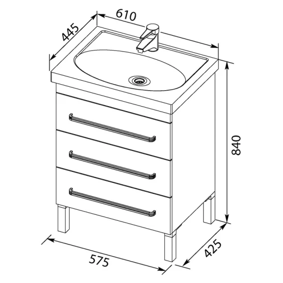 Тумба черный 57,5 см Aquanet Сиена 00186367
