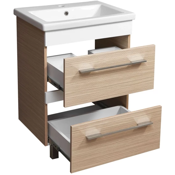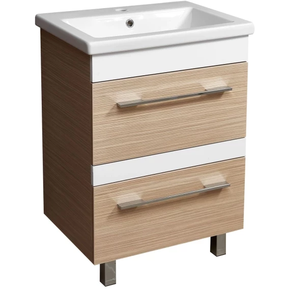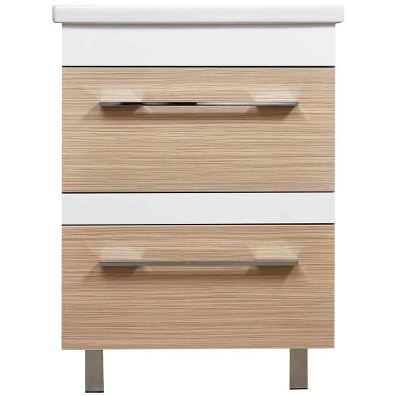 Тумба с раковиной зебрано светлый/белый глянец 60 см Stella Polar Симона SETSP-00000169/UM-COM60/1