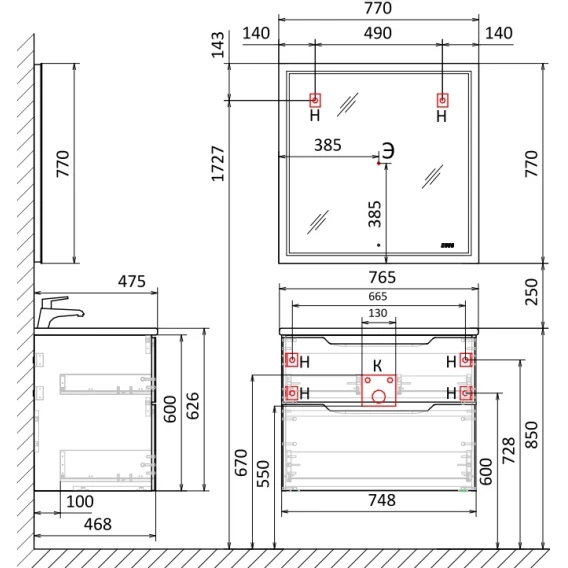Комплект мебели антрацит 76,5 см Jorno Slide Sli.01.75/P/A + 4640021062210 + Sli.02.77/W