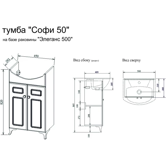 Комплект мебели белый матовый 50 см Sanflor Софи C0002221 + 4620008195766 + C02650