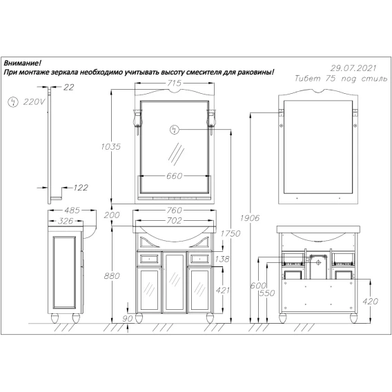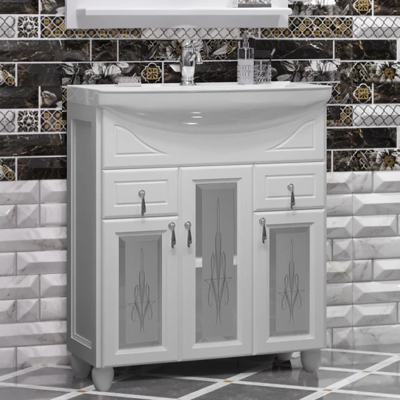 Тумба Тибет 75, цвет 9003, с худ.стеклом (раковина Стиль 75)