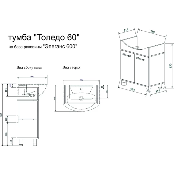 Комплект мебели венге/орегон 60 см Sanflor Толедо C0000001817 + 4620008196114 + C0000001816