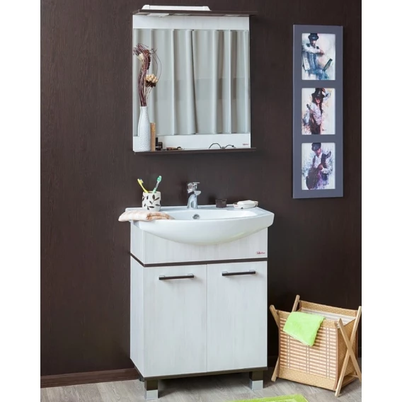 Тумба с раковиной венге/северное дерево светлое 76 см Sanflor Толедо H0000001277 + 4620008197371
