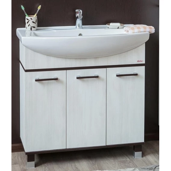 Тумба с раковиной венге/северное дерево светлое 87,5 см Sanflor Толедо H0000001279 + 4620008197456