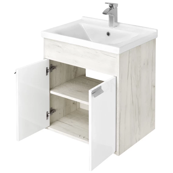 Тумба с раковиной белый глянец/дуб крафт 60 см Акватон Флай 1A2373K0FAX10