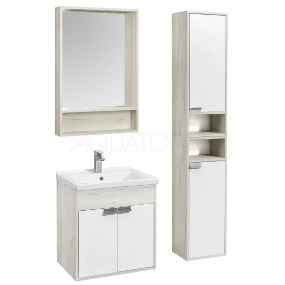 Комплект мебели белый глянец/дуб крафт 60 см Акватон Флай 1A237301FAX10 + 1WH302421 + 1A237602FA860