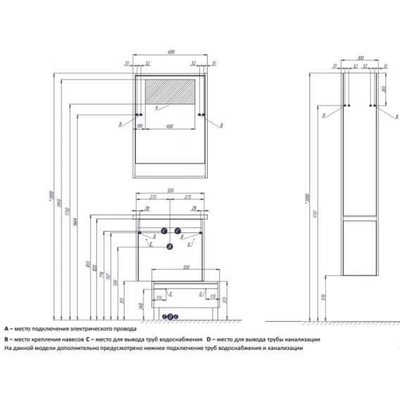Тумба с раковиной белый глянец/таксония темная 60 см Акватон Капри 1A2301K1KPDB0