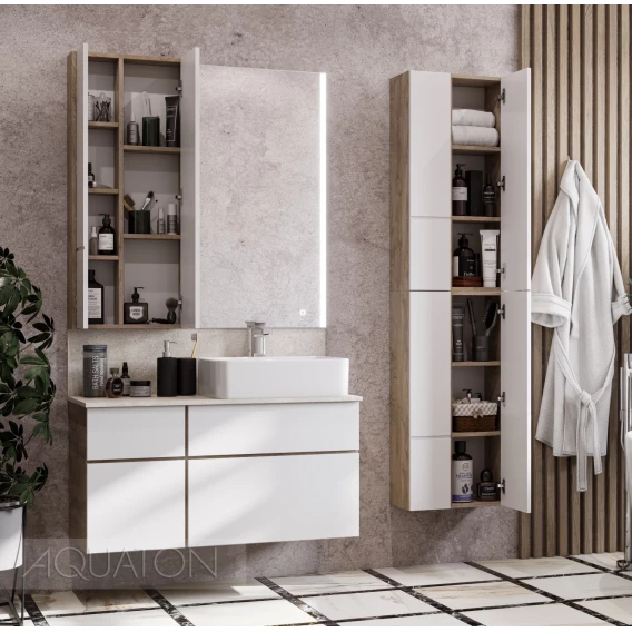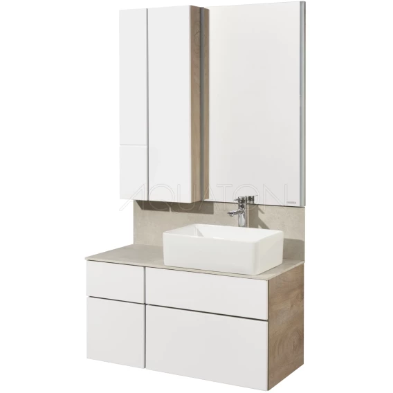 Тумба с раковиной дуб эндгрейн/белый матовый 100 см Акватон Мишель 1A2441K0MIX40