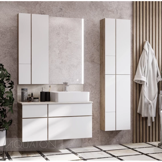Тумба с раковиной дуб эндгрейн/белый матовый 100 см Акватон Мишель 1A2441K1MIX40