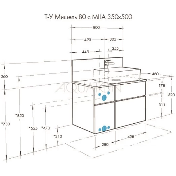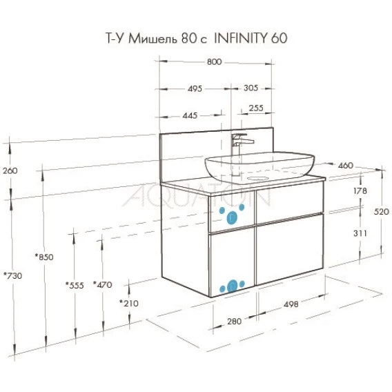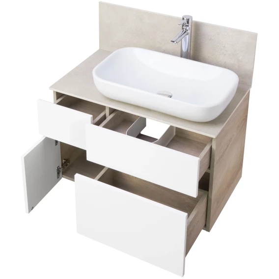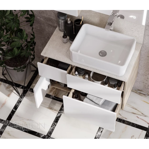Тумба с раковиной дуб эндгрейн/белый матовый 80 см Акватон Мишель 1A2445K0MIX40