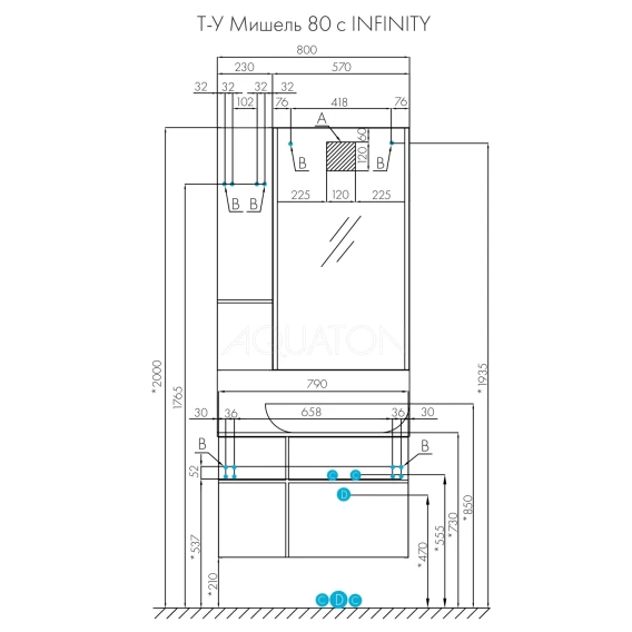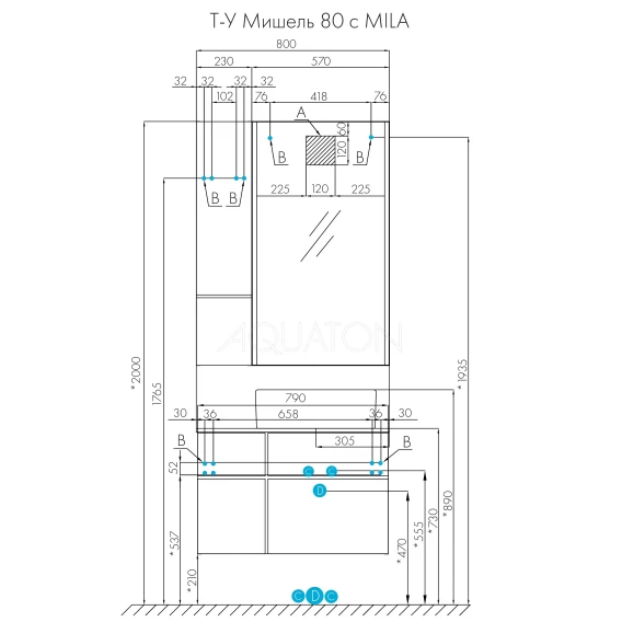 Тумба с раковиной дуб рустикальный/фьорд 80 см Акватон Мишель 1A2568K1MIX30