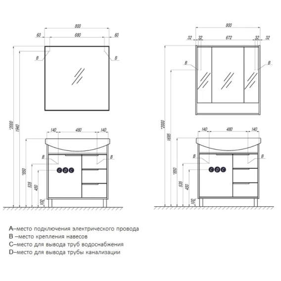 Тумба серый матовый 79,5 см Jorno Wood Wood.01.80/P/GR