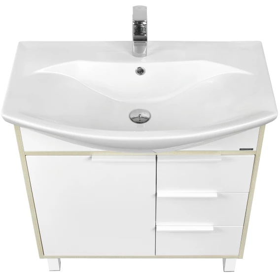 Тумба с раковиной белый глянец/ясень фабрик 80,5 см Акватон Рико 1A2154K1RIB90