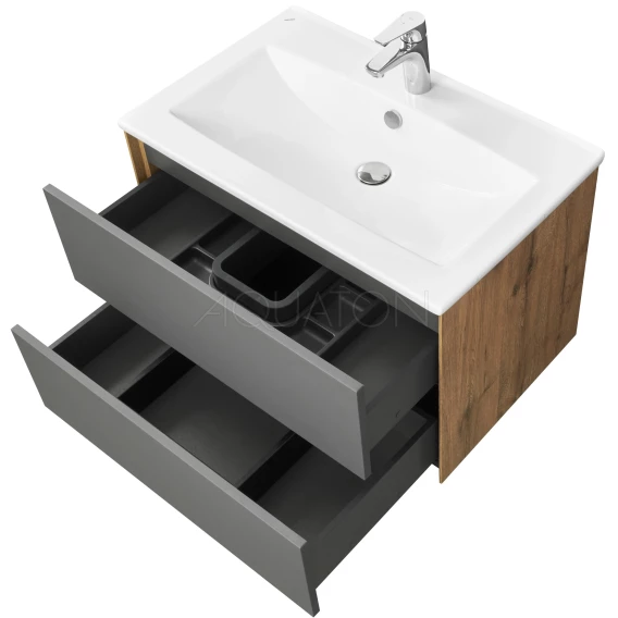 Тумба с раковиной графит софт/дуб веллингтон 75 см Акватон Сохо 1A2581K1AJA00