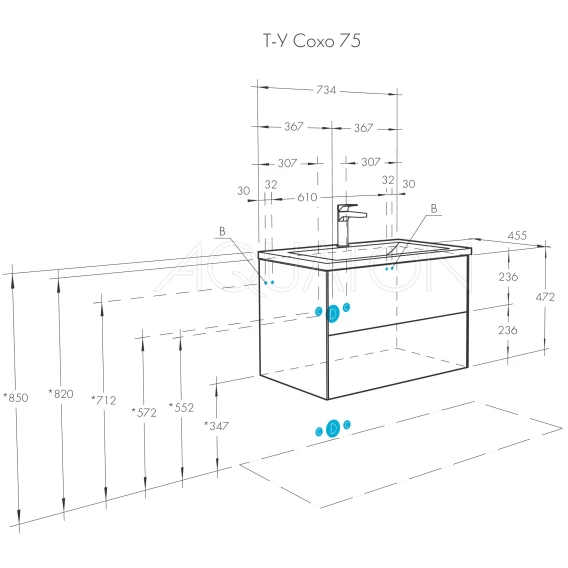 Комплект мебели графит софт/дуб веллингтон 75 см Акватон Сохо 1A258101AJA00 + 1WH501619 + 1A258302AJA0L