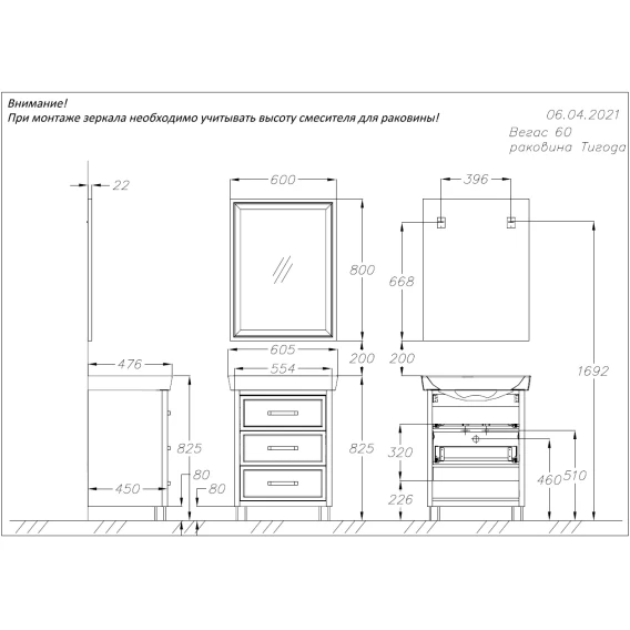 Тумба с раковиной белый матовый 60,5 см Opadiris Вегас