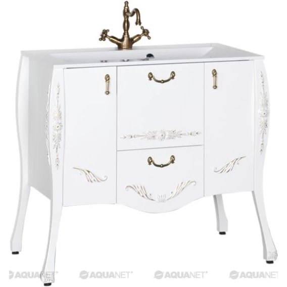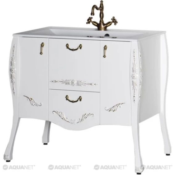 Тумба белый/золото 97,6 см Aquanet Виктория 00183931