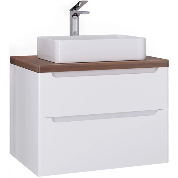 Тумба с раковиной белый глянец 80 см со столешницей бук темный Jorno Wood Wood.01.80/P/W + Wood.06.80/DW + 0085176