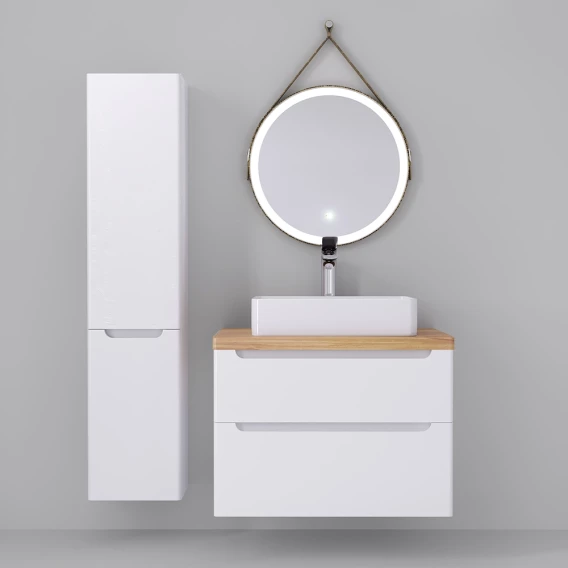 Комплект мебели белый глянец 80 см со столешницей бук светлый Jorno Wood Wood.01.80/P/W + Wood.06.80/LW + 0085176 + Wood.02.50/TK