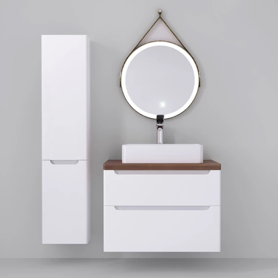 Комплект мебели белый глянец 80 см со столешницей бук темный Jorno Wood Wood.01.80/P/W + Wood.06.80/DW + 0085176 + Wood.02.50/TK