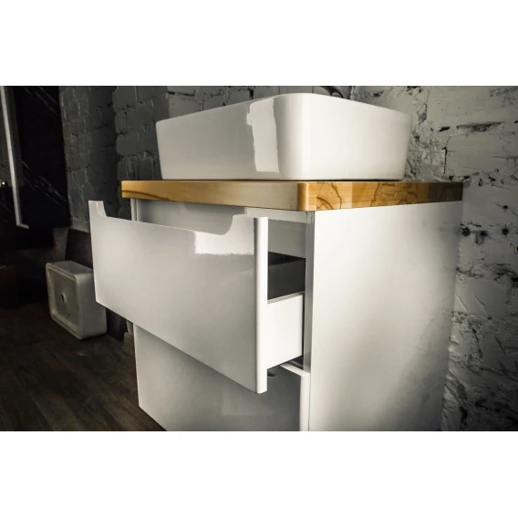 Тумба с раковиной белый глянец 80 см со столешницей бук светлый Jorno Wood Wood.01.80/P/W + Wood.06.80/LW + 0085176