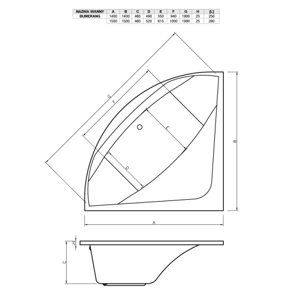 Акриловая ванна 140x140 см Vayer Boomerang GL000010858