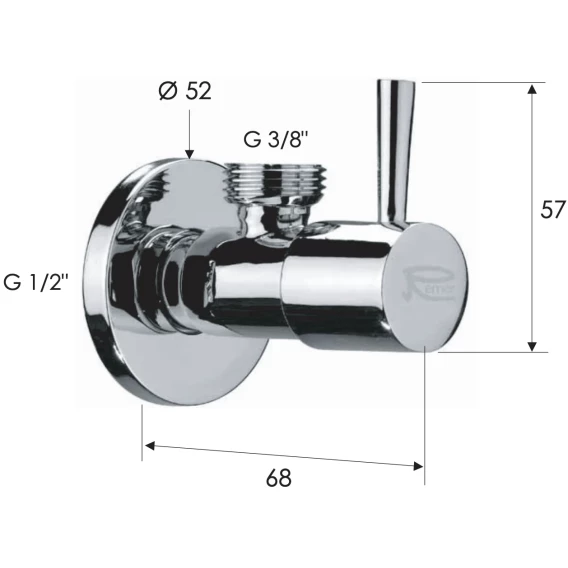 Угловой вентиль 1/2"×3/8" Remer 128L1238NO