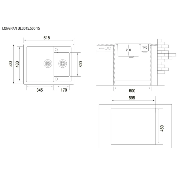 Кухонная мойка лава Longran Ultra ULS615.500 15 - 40