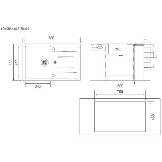 Кухонная мойка оникс Longran Ultra ULS780.500 - 10