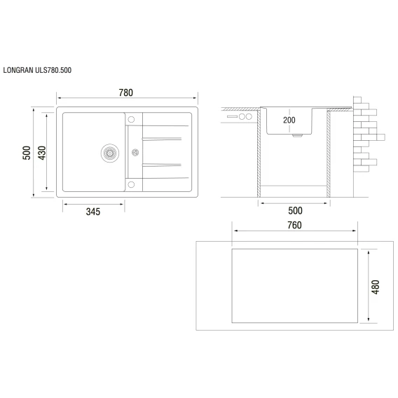 Кухонная мойка лава Longran Ultra ULS780.500 - 40