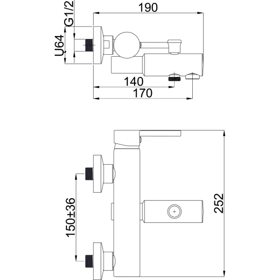 Смеситель для ванны Rubineta Ultra-10/K U10K08