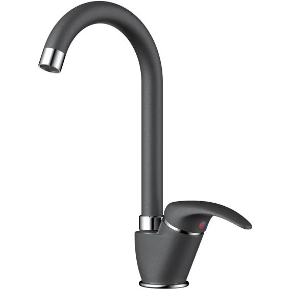 • Смеситель выполнен в современном стиле и снабжен высоким поворотным изливом.