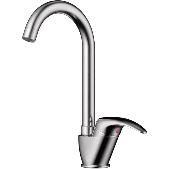 • Смеситель выполнен в современном стиле и снабжен высоким поворотным изливом.