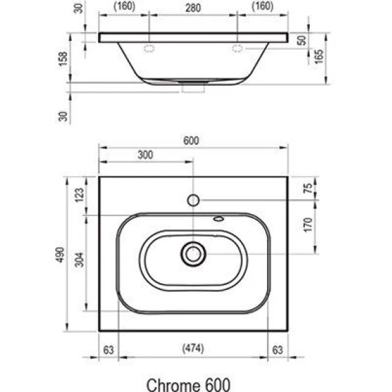 Умывальник 60 см Ravak Chrome 600 со скрытым переливом XJG01260000