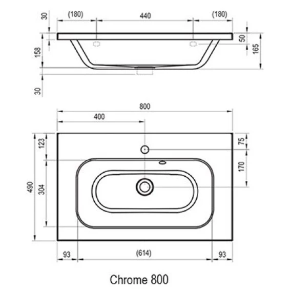 Умывальник 80 см Ravak Chrome 800 со скрытым переливом XJG01280000