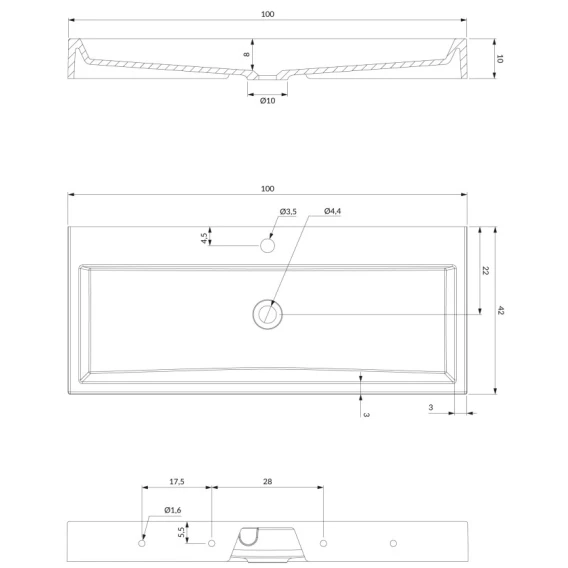 Раковина 100x42 см Omnires Thasos THASOS1000BP